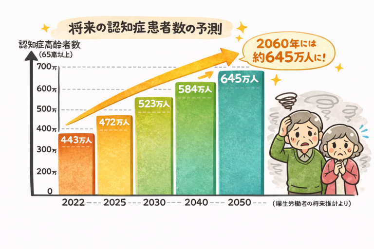 2022年に約440万人だった認知症の方が、2060年には約645万人に増える
